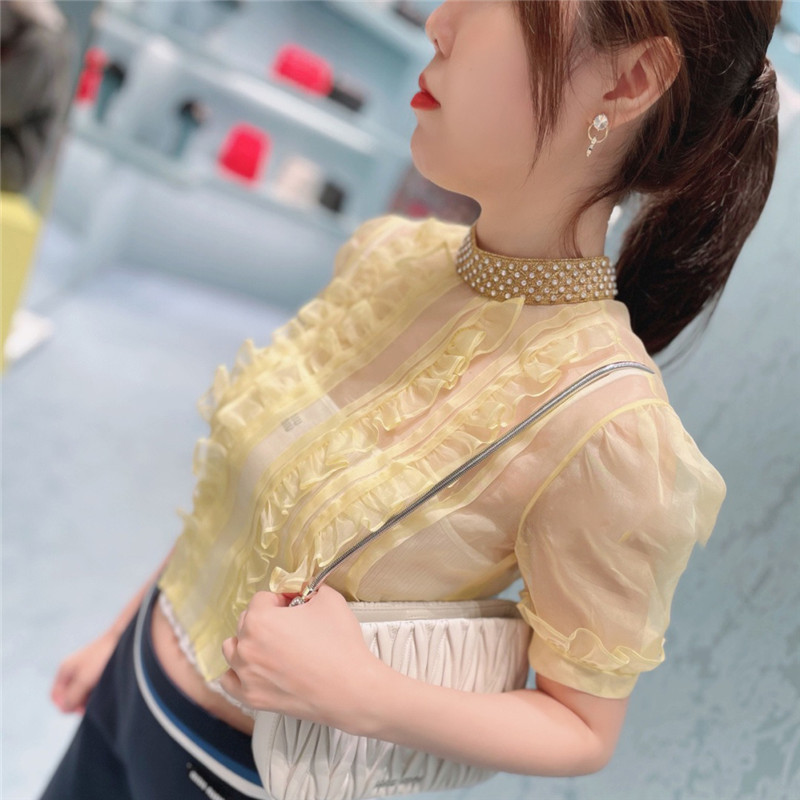 首頁 > 采購清單 > 2021春夏新款繆家甜美圓領雪紡泡泡袖仿真絲襯衫褶皺短款襯衣上衣