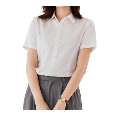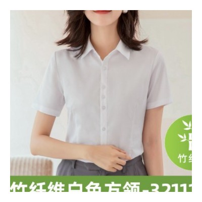 新款高彈力免燙竹纖維襯衫批發白色修身女士襯衫職業工裝短袖襯衫
