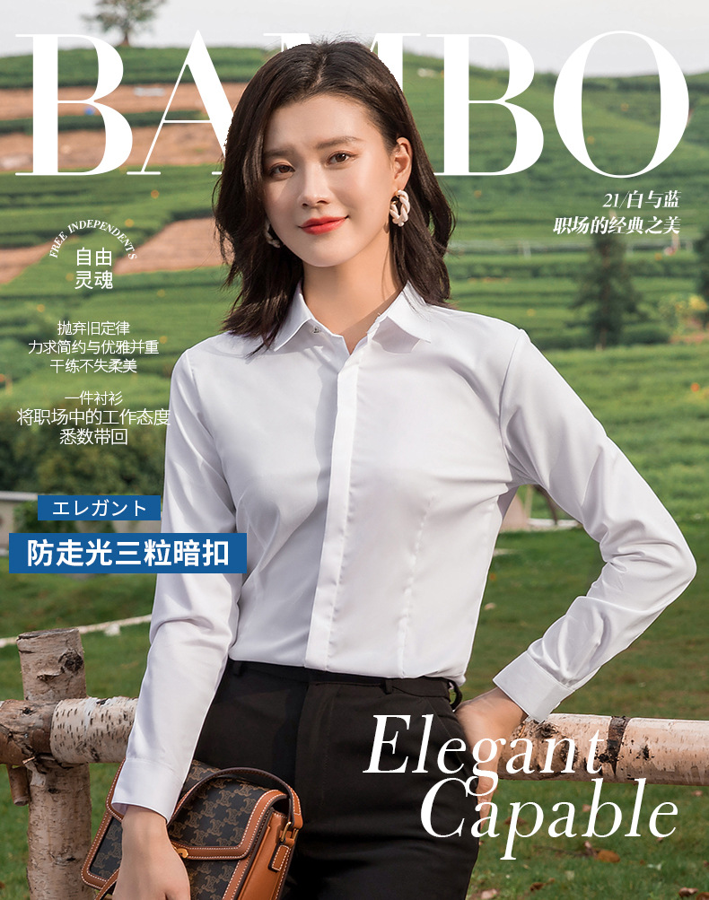新款竹纖維長(zhǎng)袖襯衫現(xiàn)貨彈力時(shí)尚修身透氣白襯衫職業(yè)工裝女式襯衫
