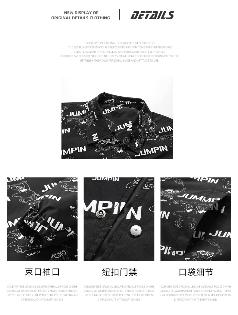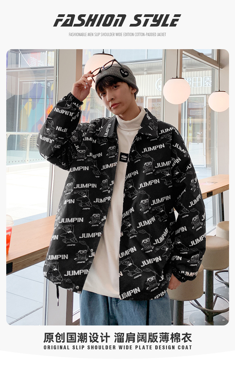 2022春季潮牌新款夾棉夾克 青少年寬松美式翻領外套男生外套開衫