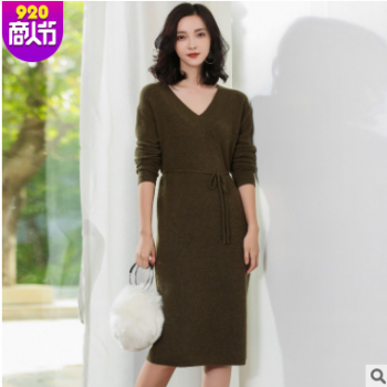 100%純山羊絨衫女 秋冬新款過膝連衣裙超長款套頭時尚寬松長裙