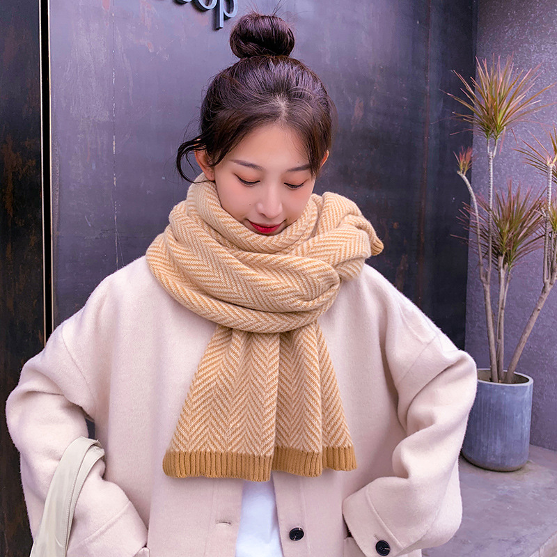 人字紋圍巾女秋冬季情侶韓版百搭可愛學生ins少女日系毛線圍脖男