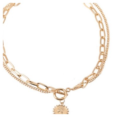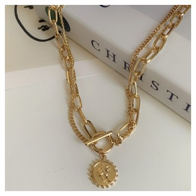 歐美氣質雙層項鏈女 個性簡約美人頭像吊墜ins冷淡風小眾鎖骨頸鏈