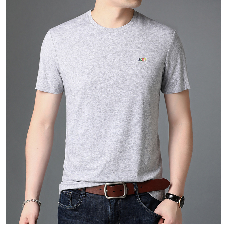 批發恒源祥夏裝莫代爾短袖t恤男圓領中年純色休閑寬松半袖上衣服