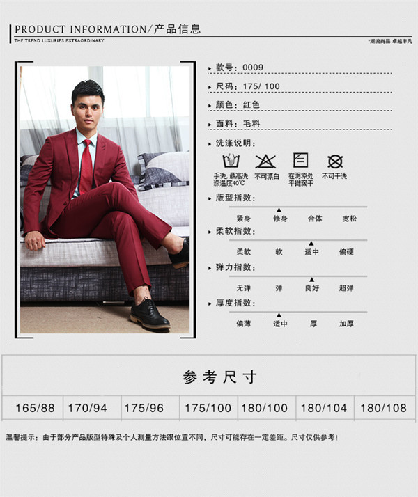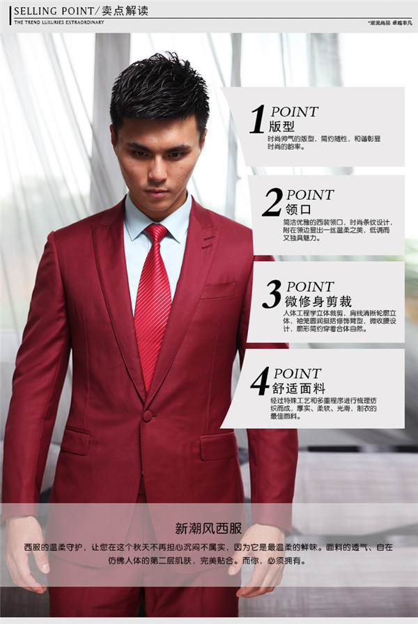 2021新款男士西服套裝酒紅色修身時尚小西裝男式新郎禮服商務職業