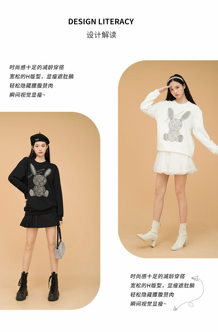 女裝2021秋冬新款亮片可愛小兔衛衣女潮流高定港風女T恤一件代發