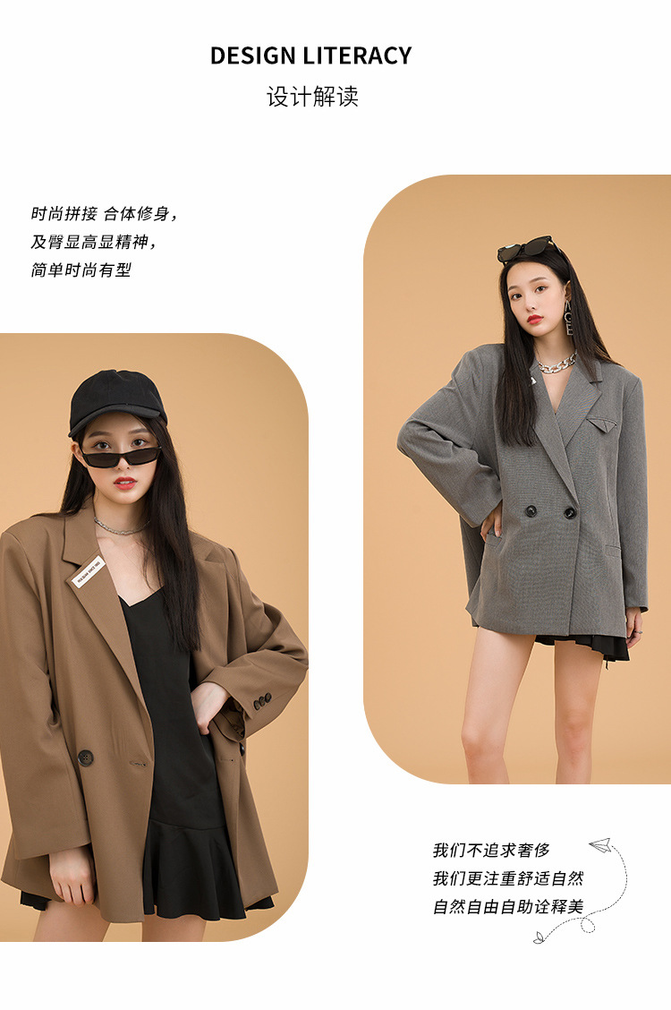 2021秋裝新品西裝女小翻領外套高級感純色復古小西裝外套垂感上衣