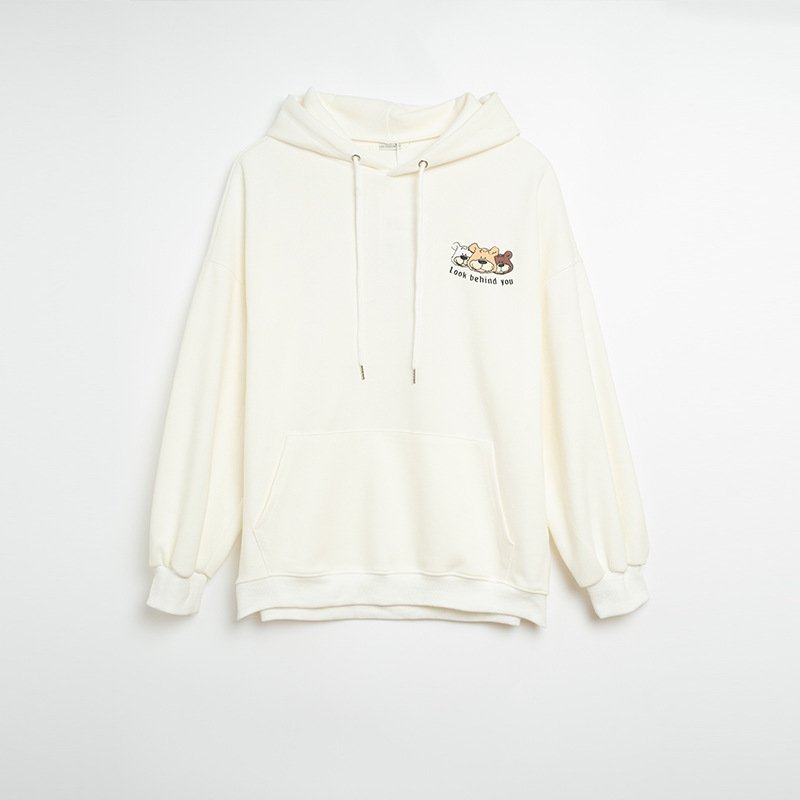女裝2021秋冬新品純色可愛卡通小熊頭像連帽衛衣女甜美連帽女T恤