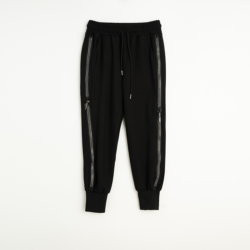 女裝2021秋冬新品褲子拉鏈鑲鉆小腳褲小個子女生休閑褲潮流女褲