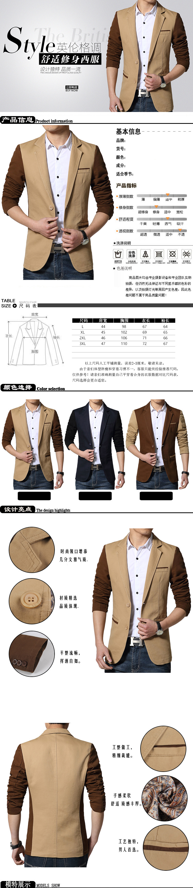 自主成人拼色西裝西裝領單排兩粒扣卡其色西裝男規格齊全尾貨清倉