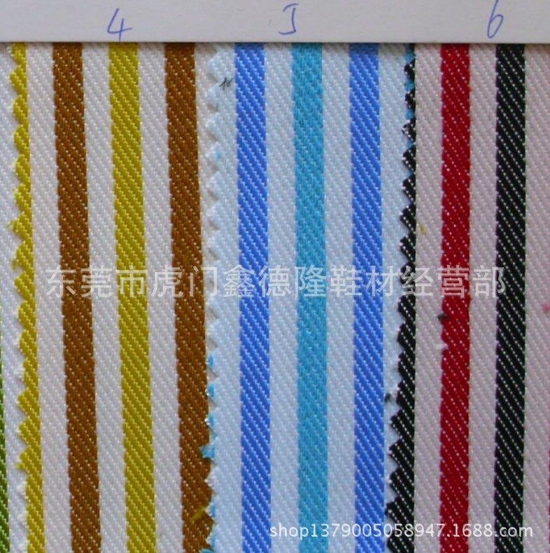 產品特征產品:色織條紋仿牛仔面料成份:滌棉幅寬:145CM用途:鞋材,箱包手袋,工藝品面料等特點:柔軟,不易起皺,下垂度好,透明,有垂感,不退色,不掉色,環保型**面料訂 貨期:7-10天起訂量:(1)現貨,無需任何起訂量 (2)新色水起訂量500碼,接受5%正負差。
