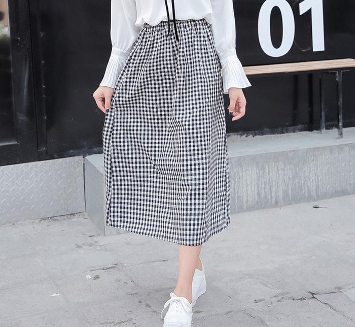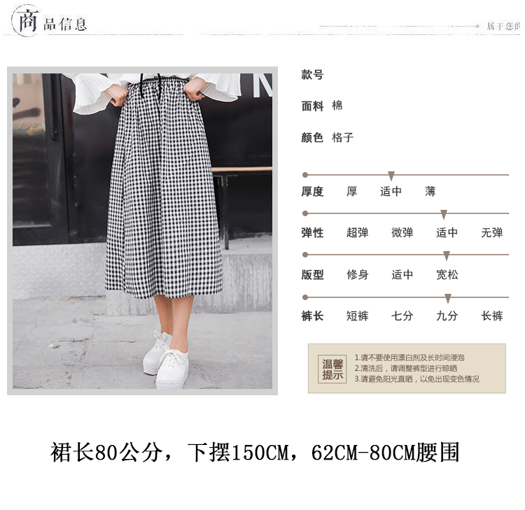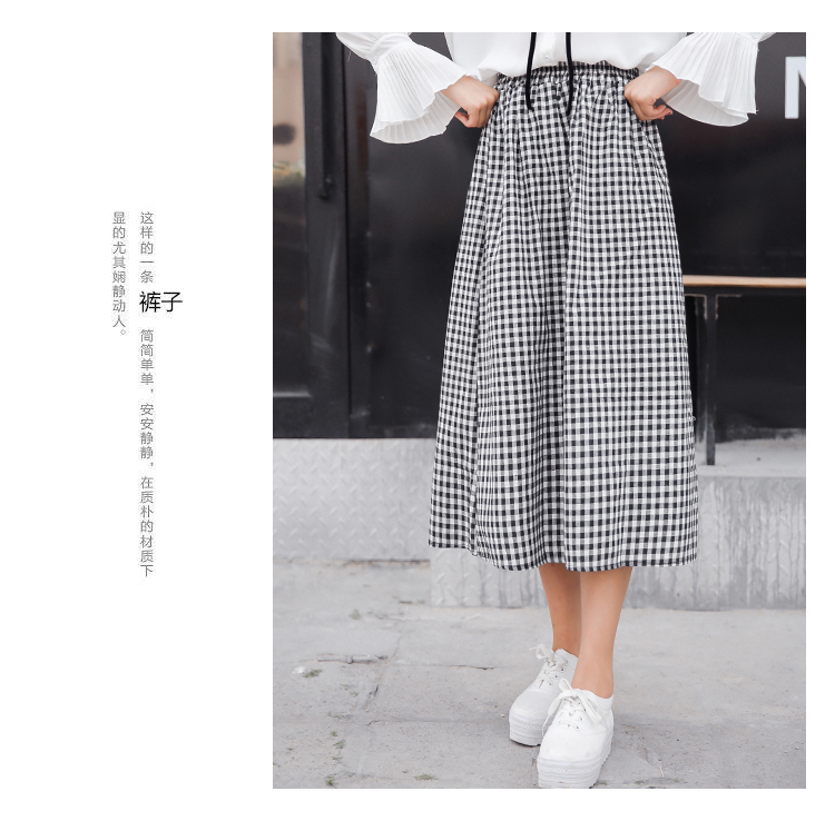 貨源2016夏裝新款簡約休閑自然腰格子A子棉麻中長款連衣裙