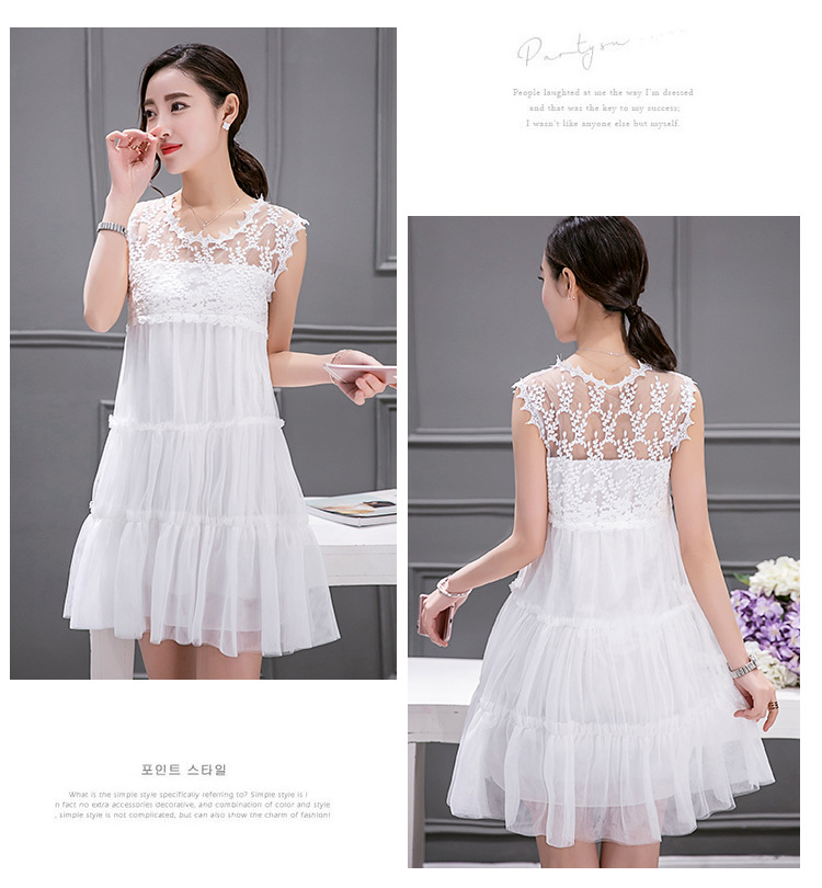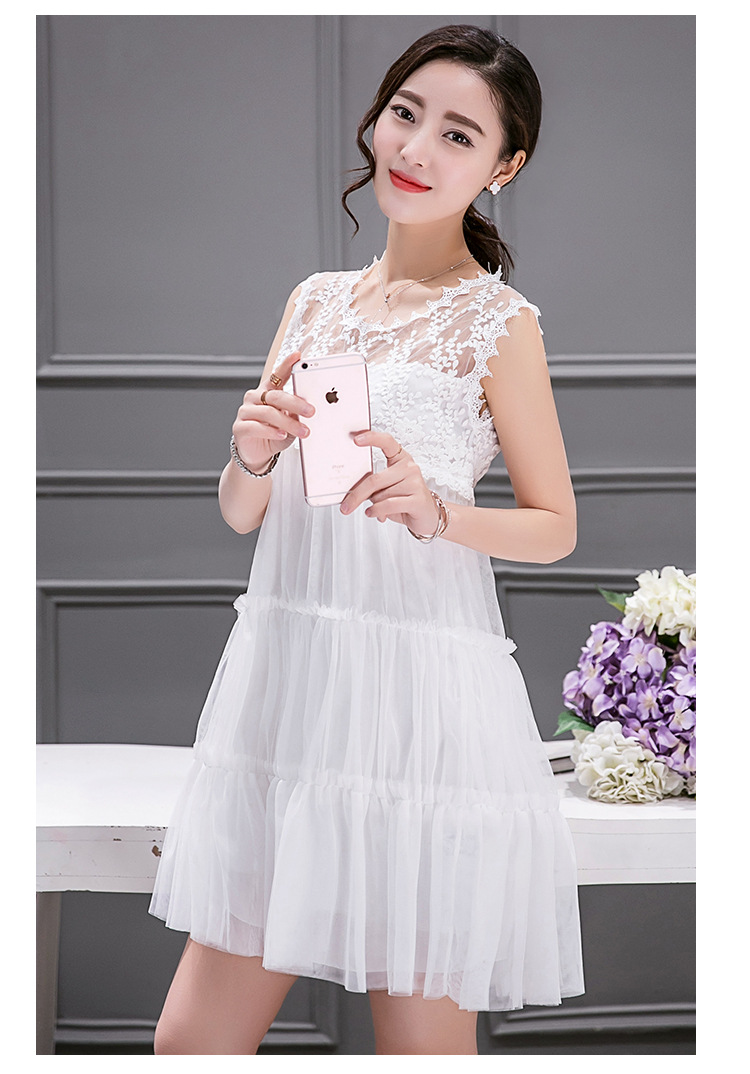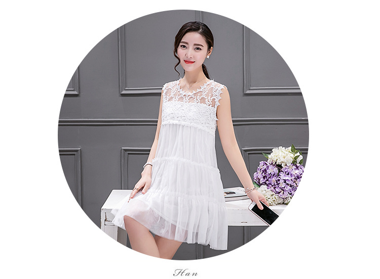 連衣裙實拍6883#沙灘裙波西米亞女 夏蕾絲網紗裙子海灘裙蓬