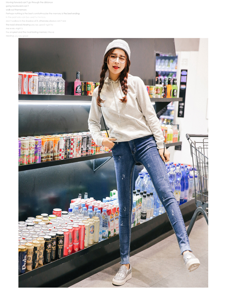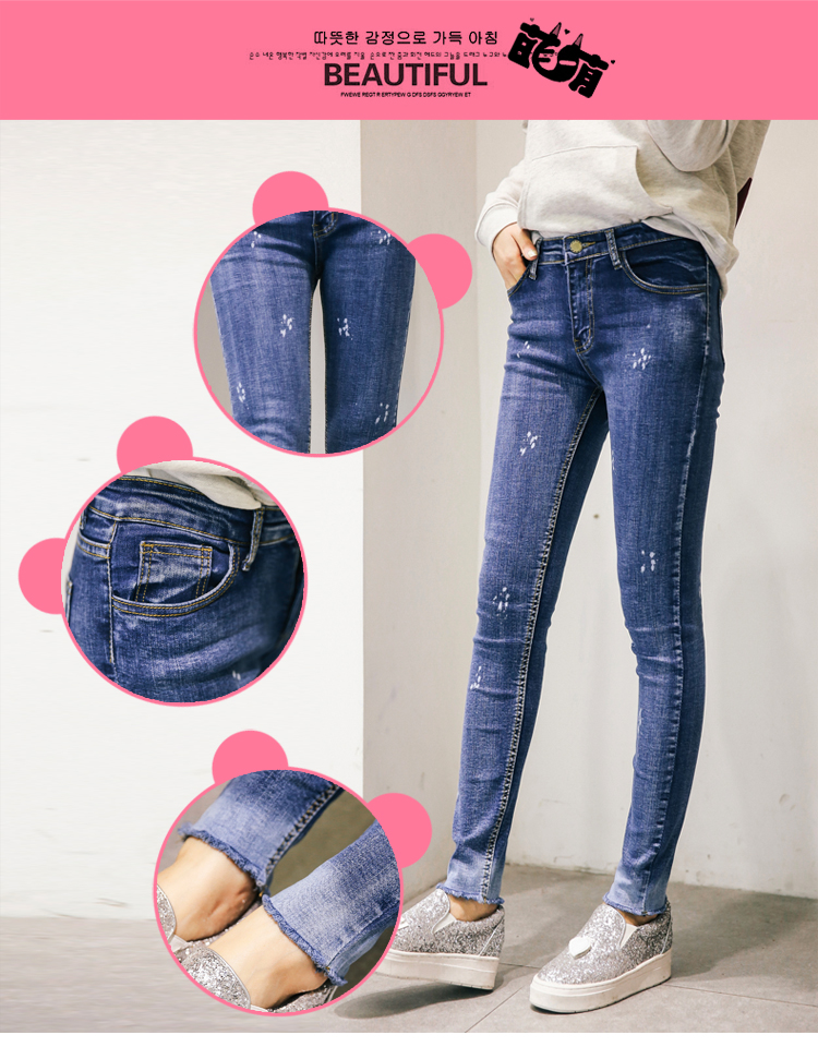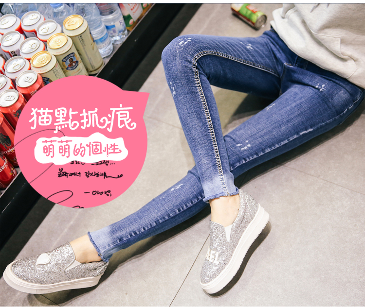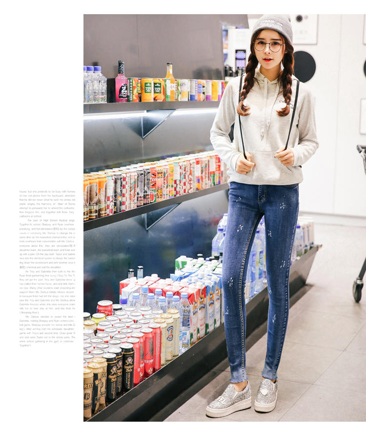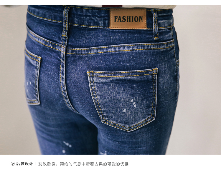 女式牛仔201女式牛仔褲6夏季新款韓版修身顯瘦小腳貓爪印牛仔