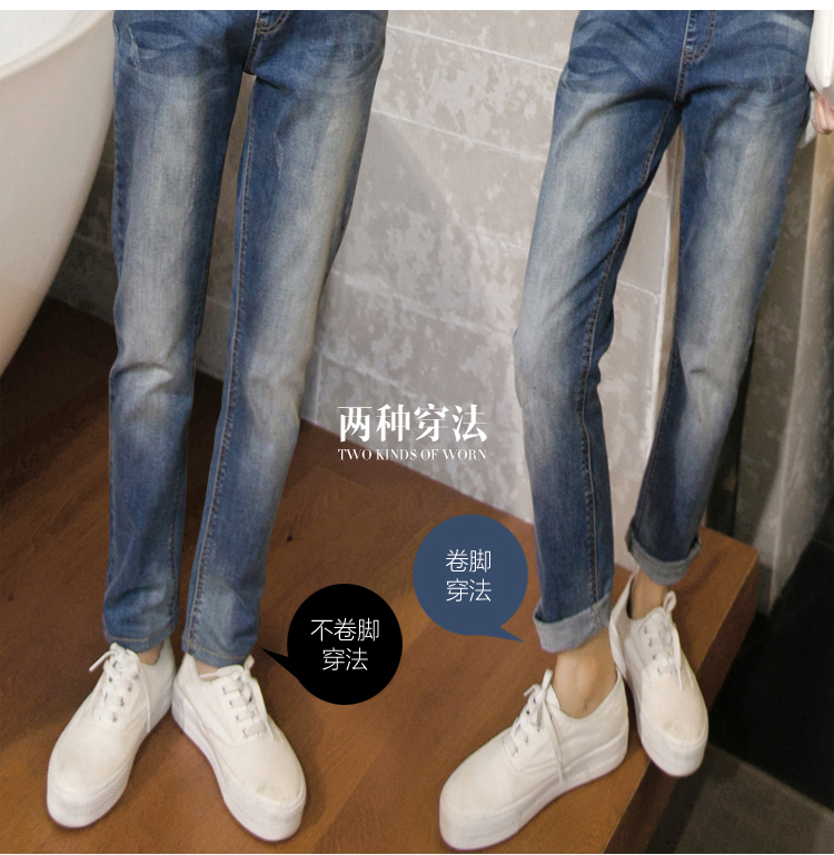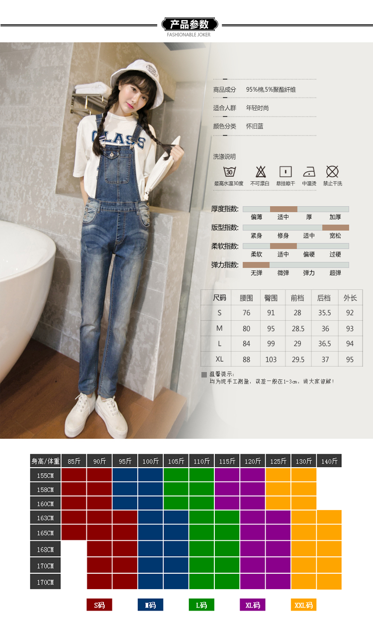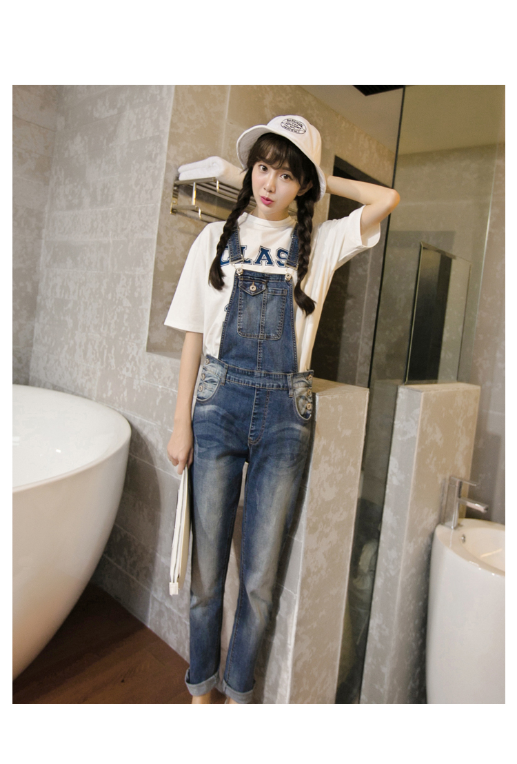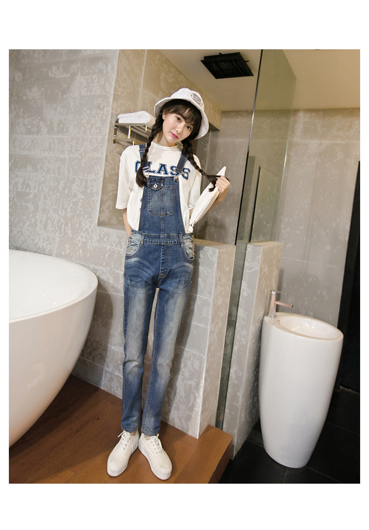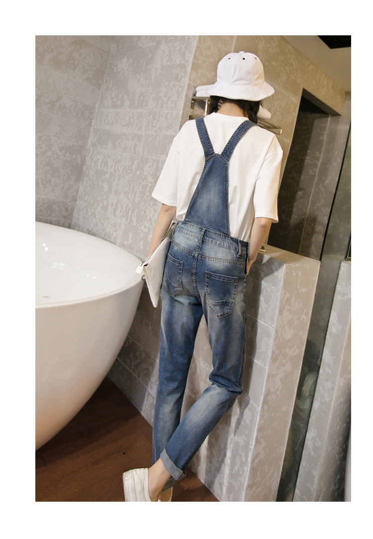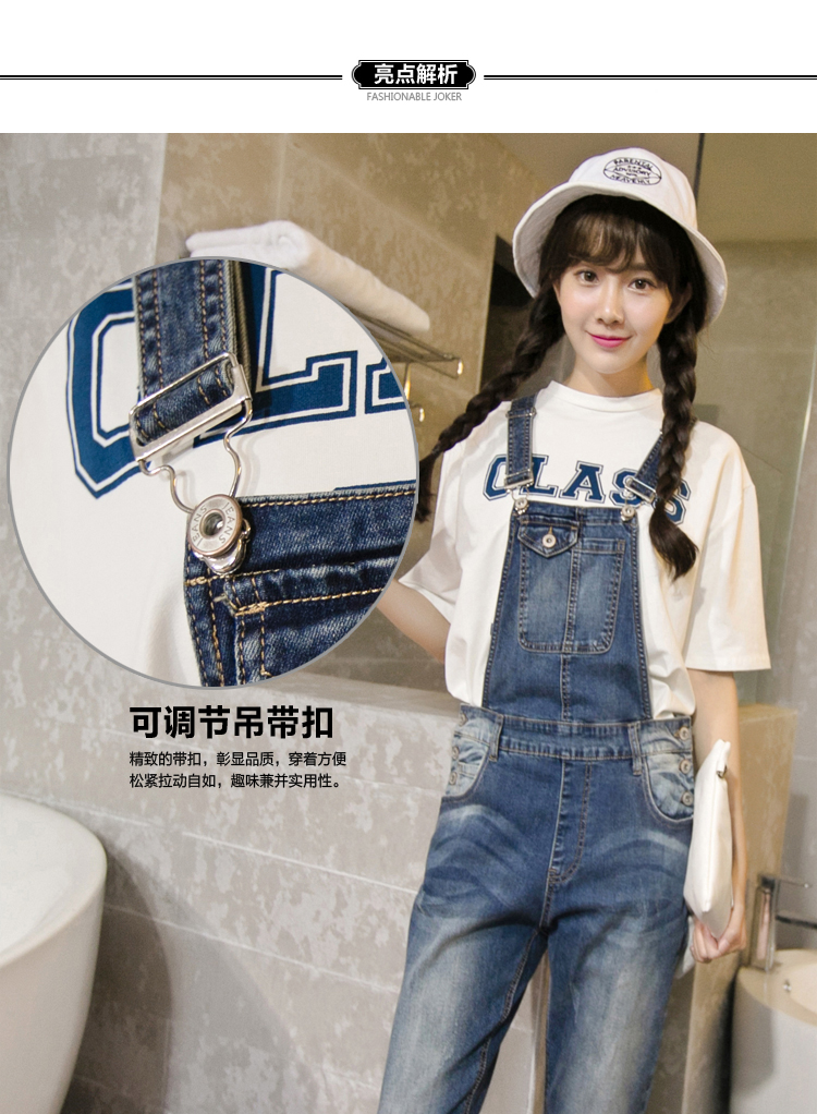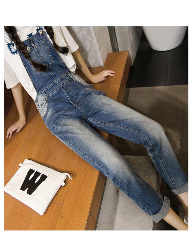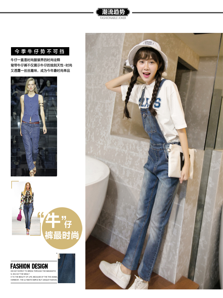 女式牛仔褲2016夏裝新款顯瘦寬松破洞直筒洋氣背帶褲牛仔長褲