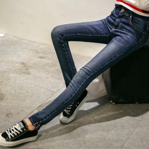 女式牛仔褲其他2016夏裝新款釘珠小腳牛仔修身顯瘦韓版長褲女