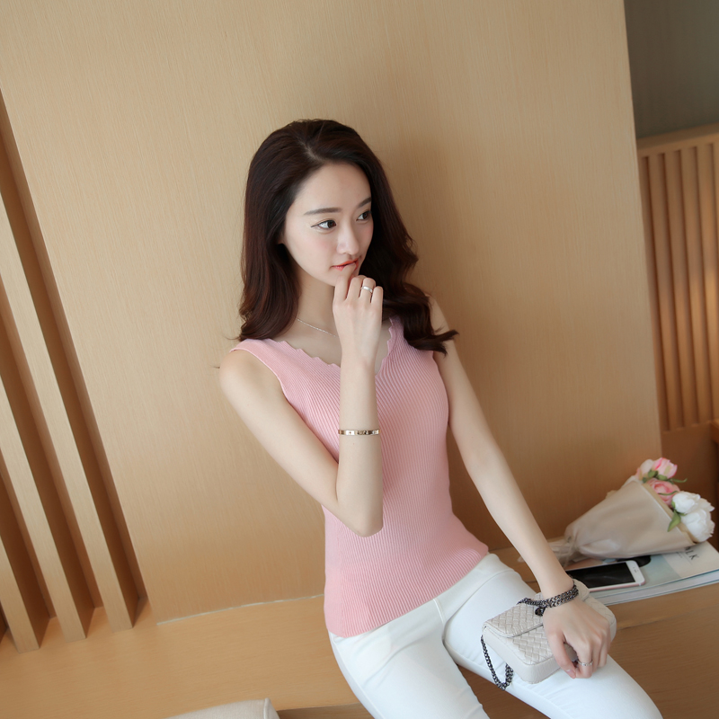 小背心、吊帶2016夏裝打底工字背心波浪領(lǐng)口小背心、吊帶衫、