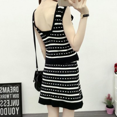 其他女式休閑套裝2016夏季新款針織冰絲無袖吊帶+半身裙時尚