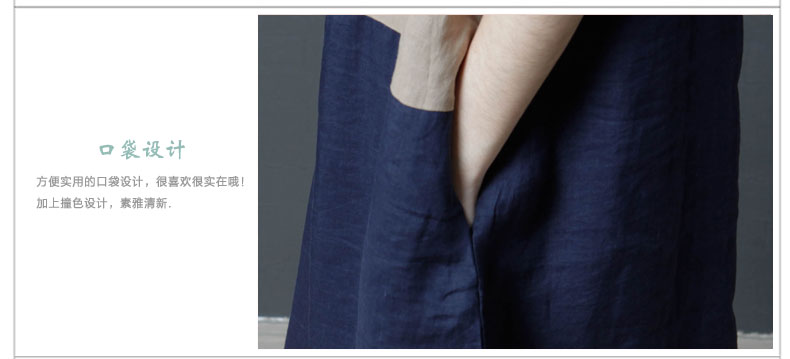 女秋夏新款2020韓版寬松大碼女裝時尚舒適撞色純麻連衣裙