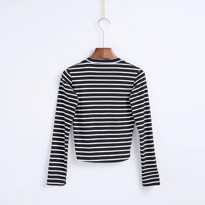 下架STUB8809早秋新款歐美風(fēng)條紋圓領(lǐng)撞色長(zhǎng)袖打底衫T恤 女