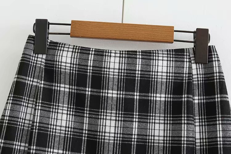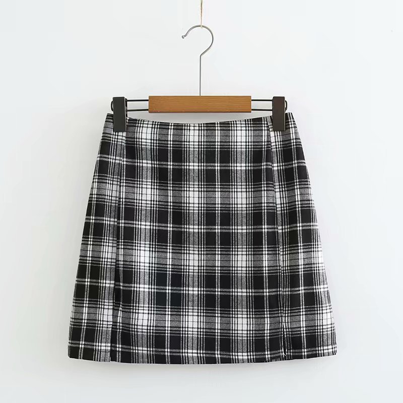 HRC2108 19春新款歐美風(fēng)高腰顯瘦格子小開叉包臀短裙半身裙 女