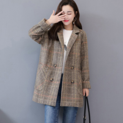 一件代發2021春秋季新款西服格子氣質通勤格紋顯瘦小西裝棕色外套