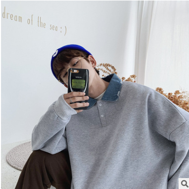 春季新品原宿風假兩件個性衛衣男士chic百搭男生韓版潮流上衣外套