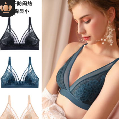 法式超薄水晶杯文胸無海棉薄款性感蕾絲鏤空防凸點透氣無鋼圈內衣