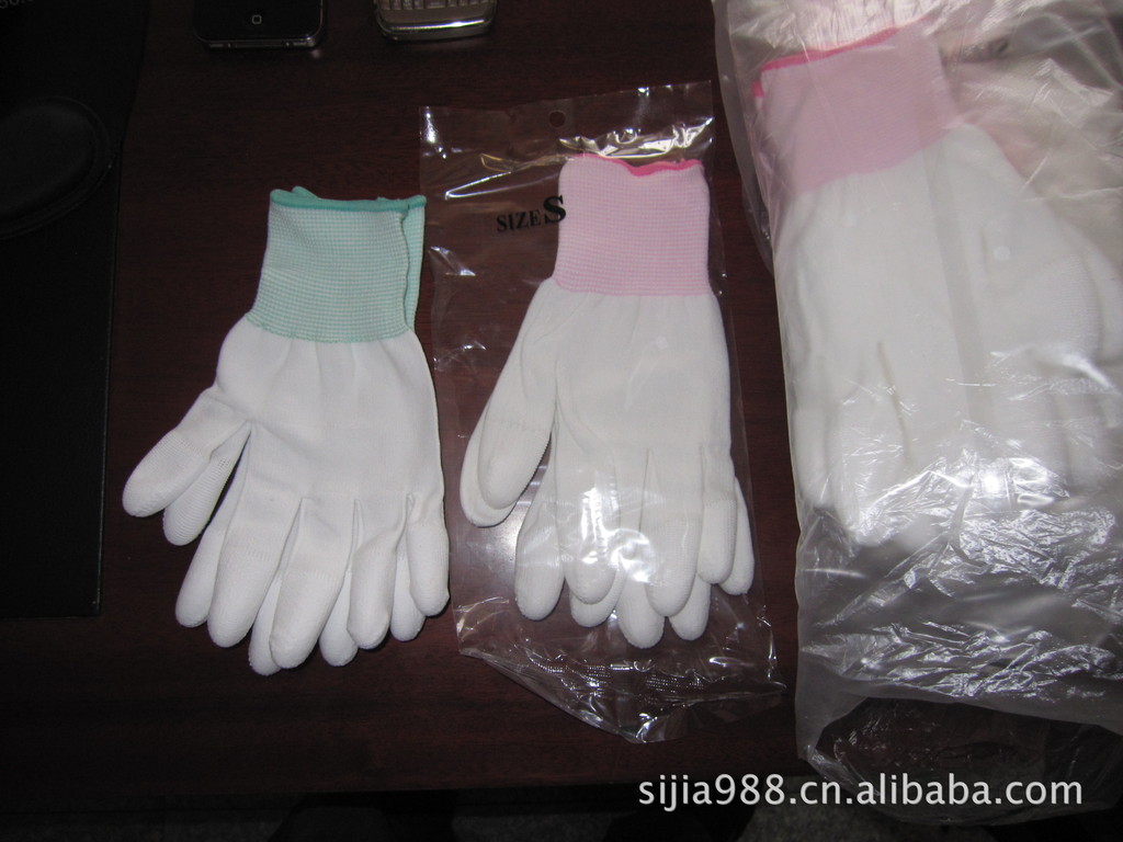 功能特點:防靜電,防滑、防油、耐磨、吸汗、透氣,無塵,使用壽命長。尼龍手套芯保證產品環保無毒,保證手套原料不產生靜電.