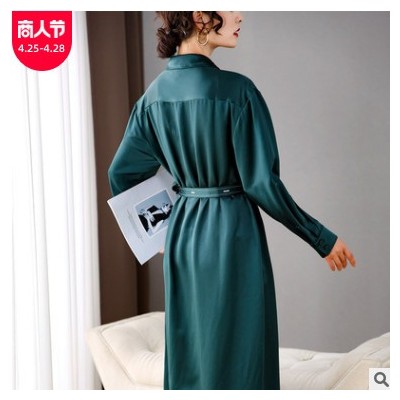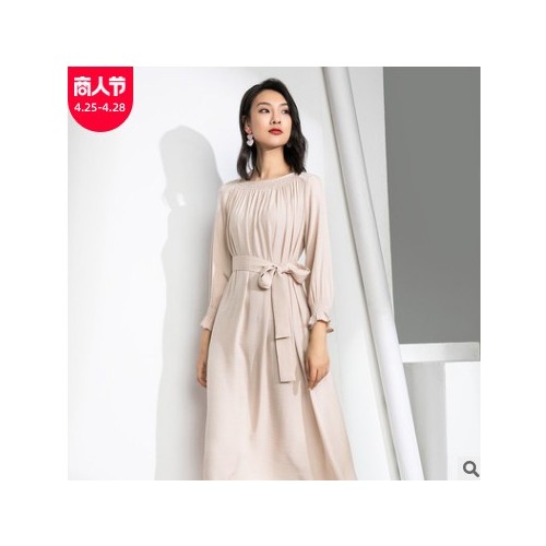春夏女裝氣質純色長袖雪紡連衣裙大碼胖MM高腰顯瘦溫柔風中長裙
