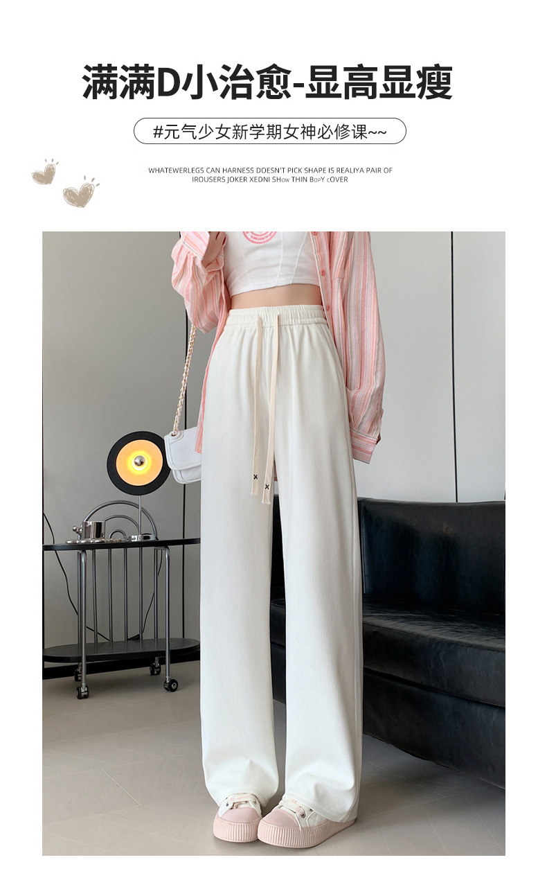 闊腿褲女秋季2024年新款秋冬休閑垂感薄款歐棉絨窄版直筒白色褲子
