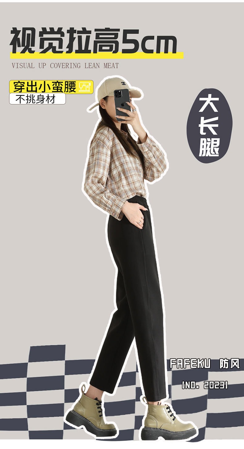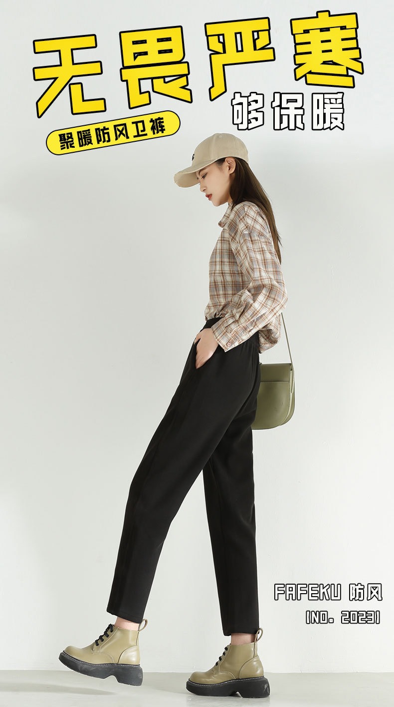 運動防風褲女秋冬加絨加厚2024新款束腳寬松顯瘦衛褲休閑保暖棉褲