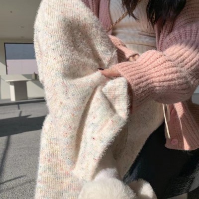 秋冬彩虹仿水貂絨糯米褲女加絨垂感高腰直筒休閑慵懶風闊腿拖地褲