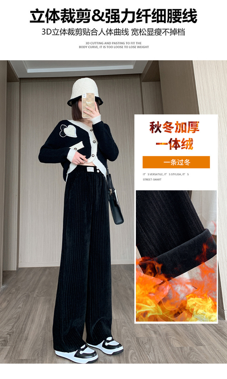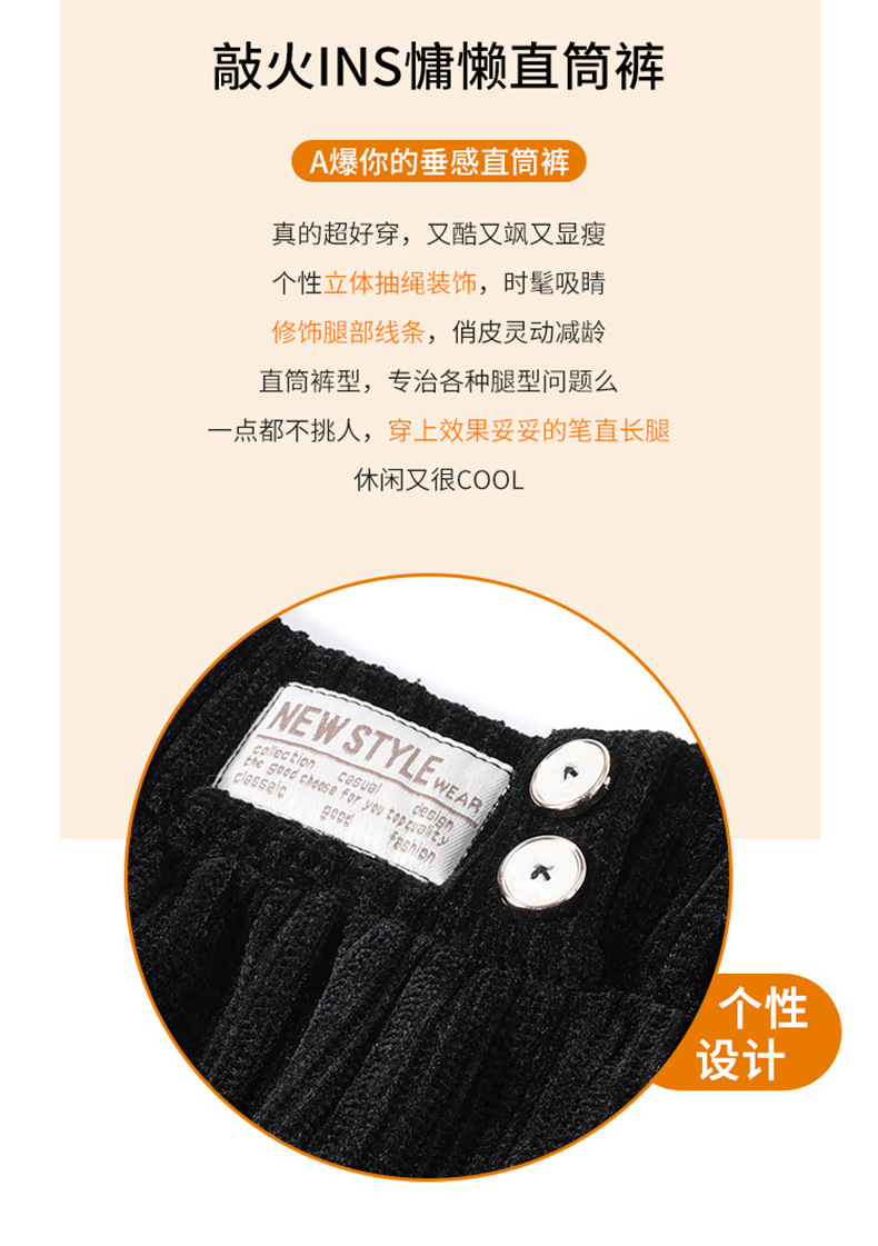雙扣云朵闊腿褲女秋冬加絨加厚雪尼爾直筒休閑褲高腰顯瘦燈芯絨褲