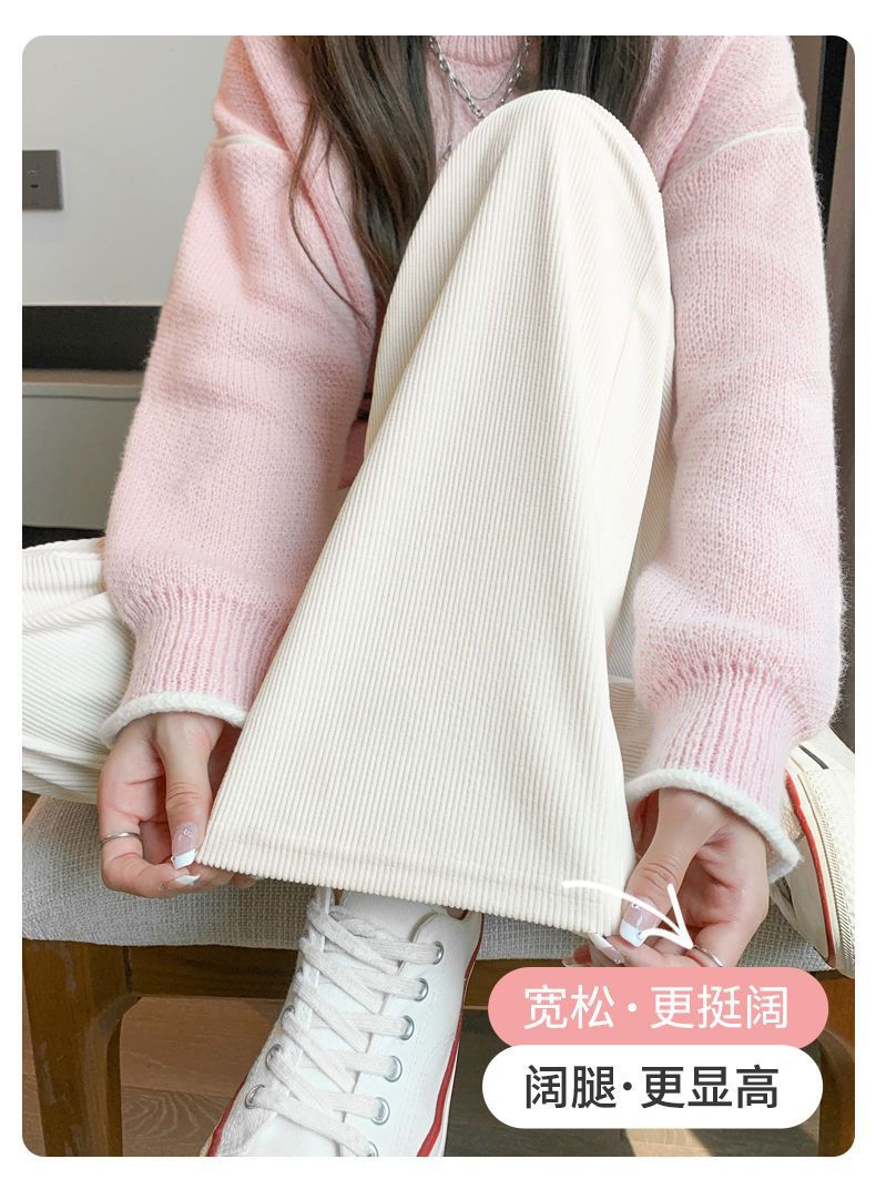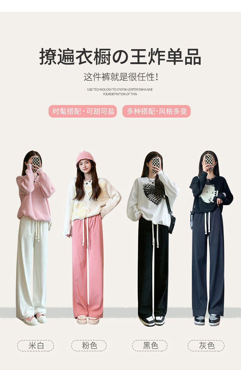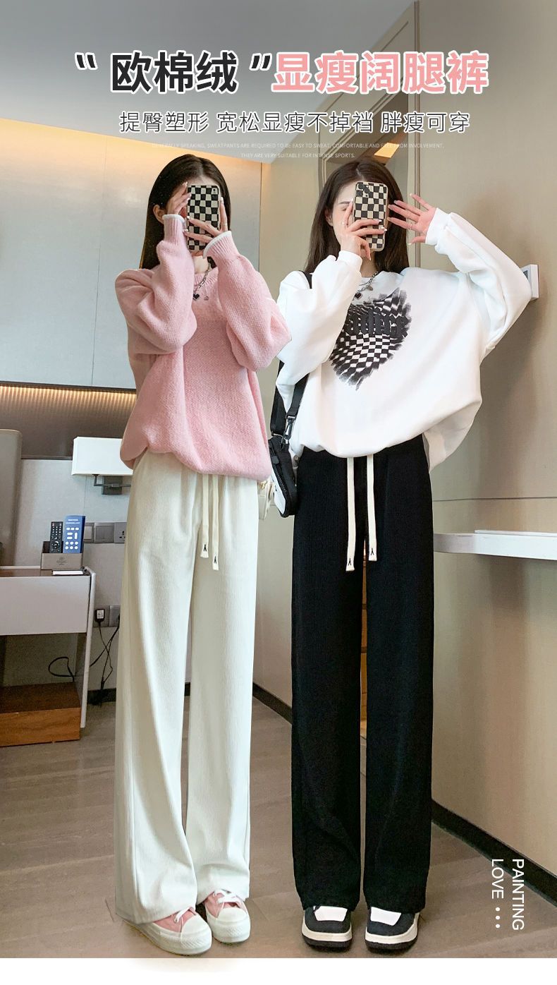 歐棉絨針織直筒褲女春秋冬新款高腰寬松抽繩運動休閑闊腿拖地褲女