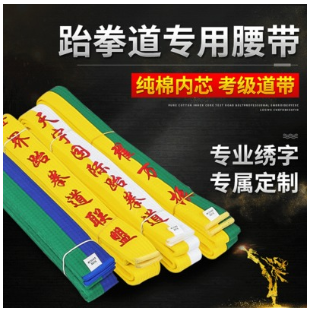 廠家批發跆拳道帶 學員考級色帶棉芯帶 柔道空手道可定制繡字腰帶