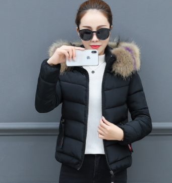圖榮短款棉衣女冬季韓版時尚大毛領棉服大碼保暖棉襖外套一件代發