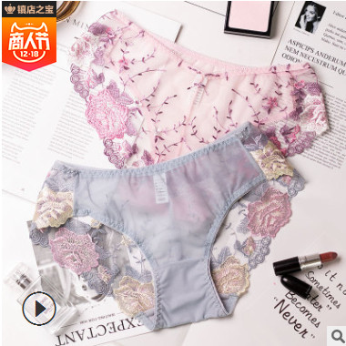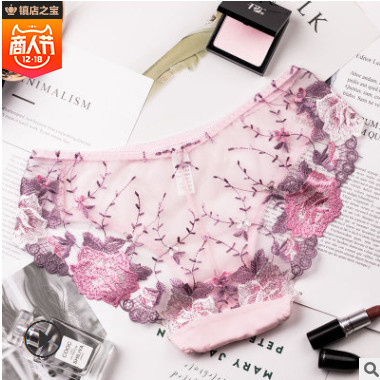 爆款性感刺繡蕾絲內褲女 透明低腰棉檔女士內褲三角褲廠家批發