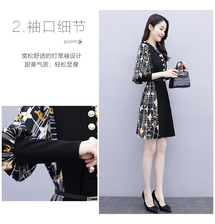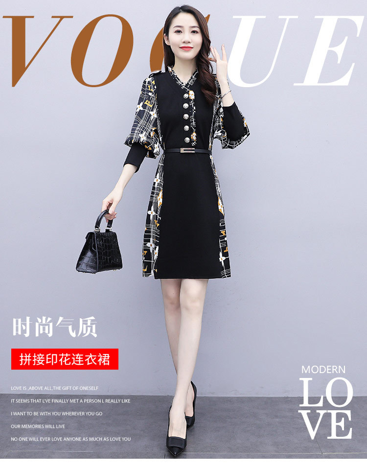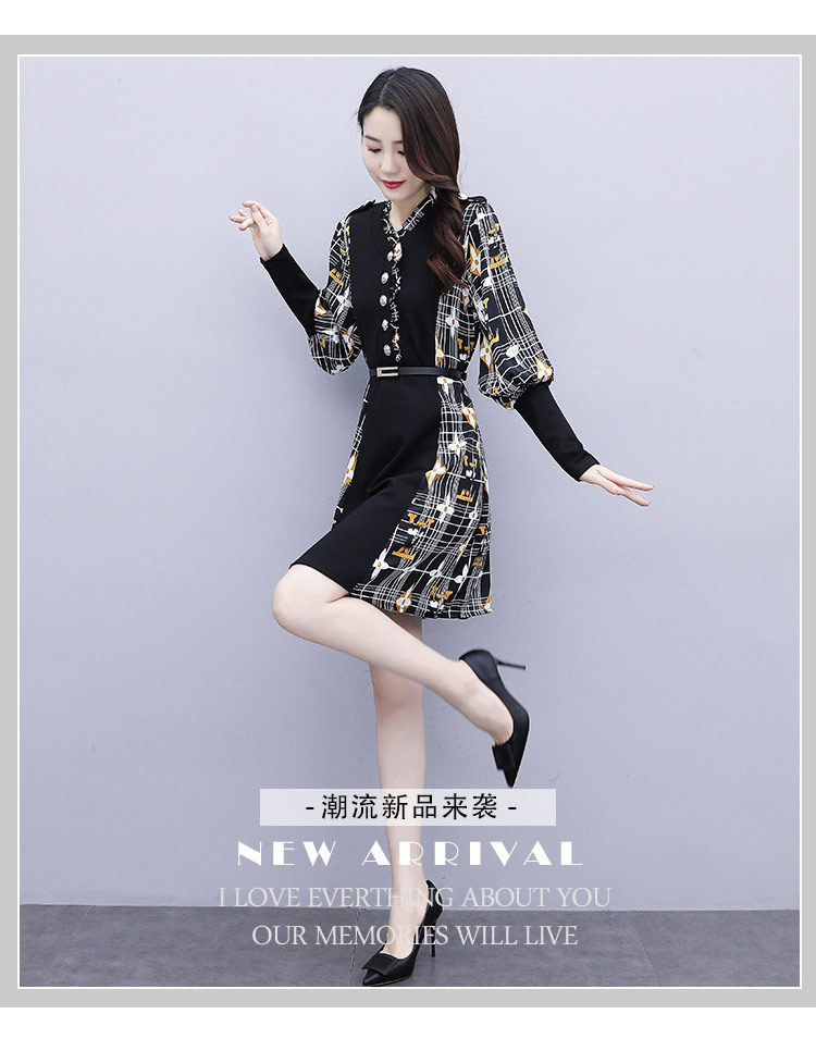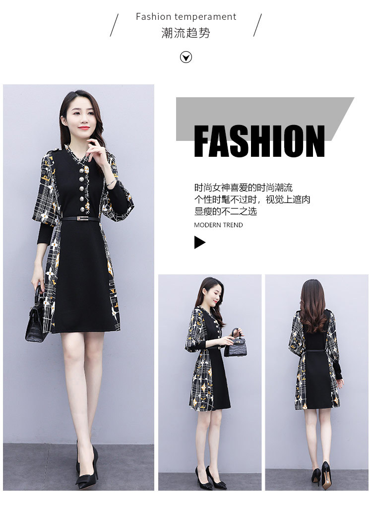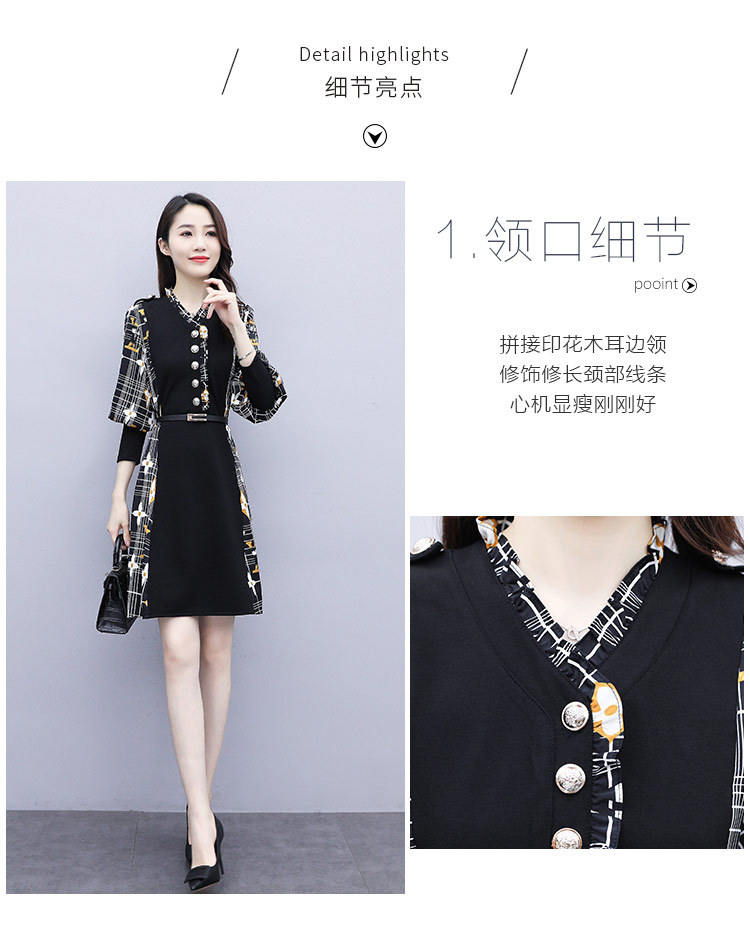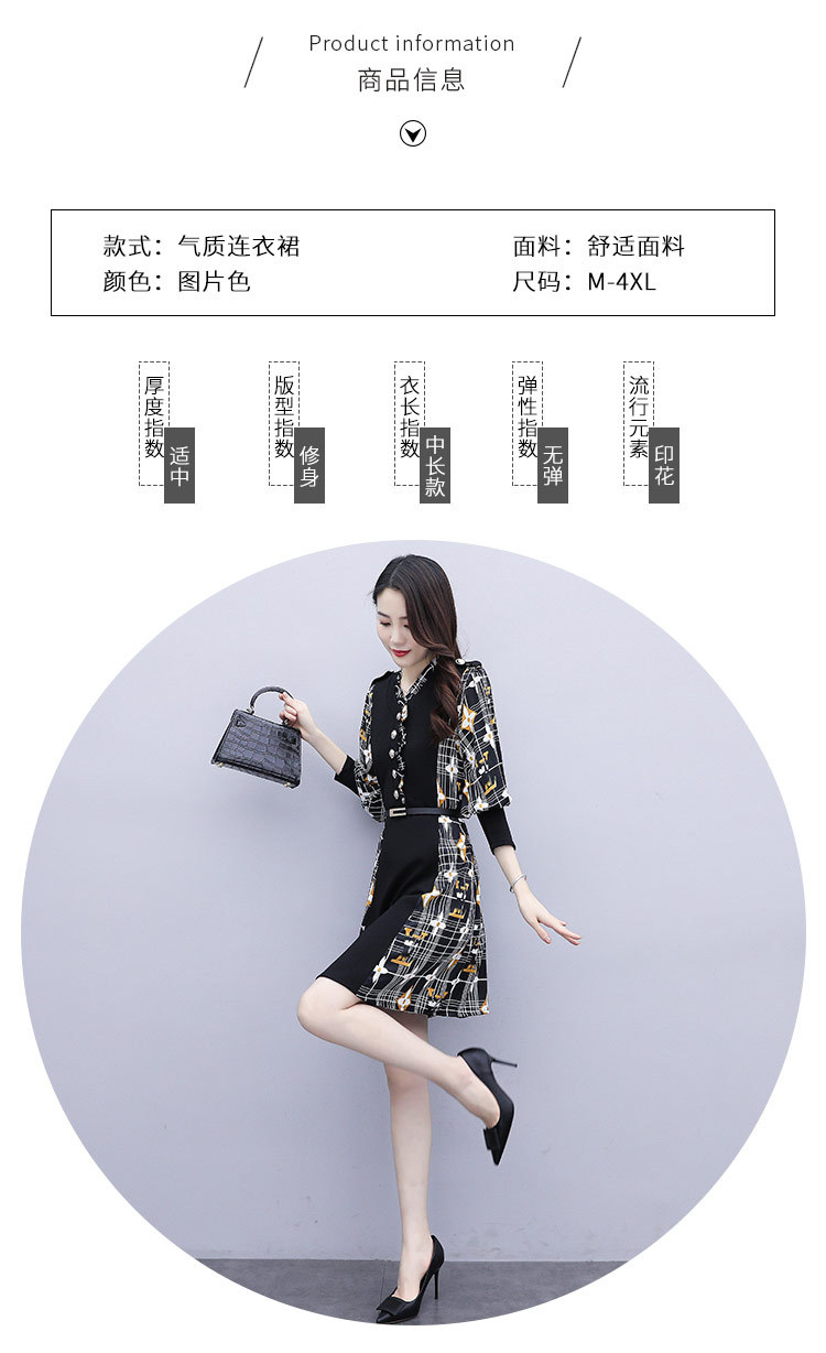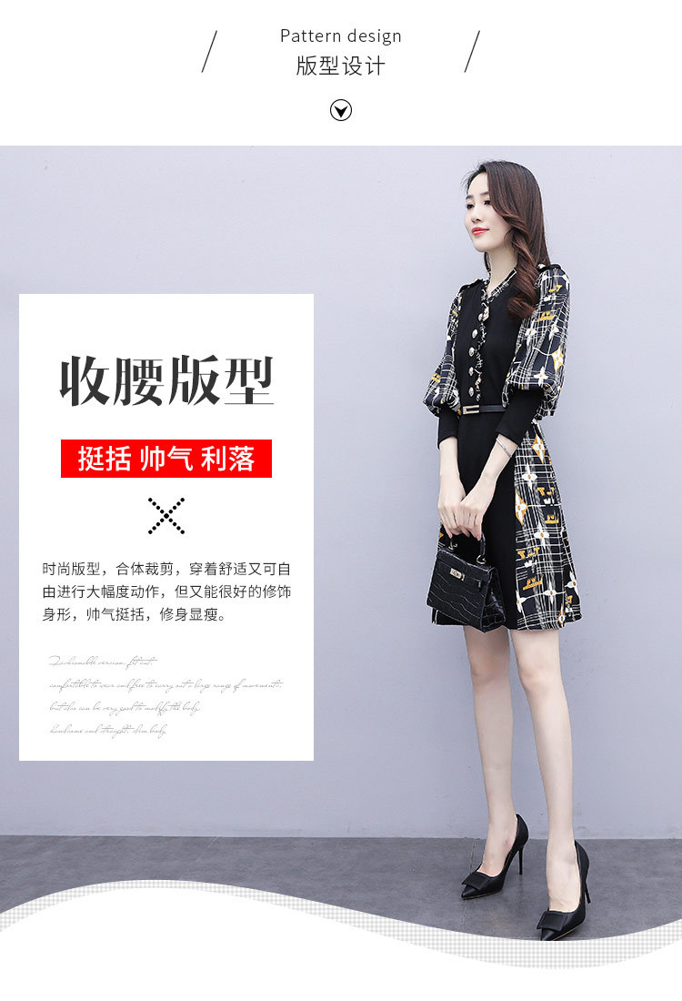 大碼2021春季新款韓版時尚立領拼接花色胖mm洋氣顯瘦連衣裙女