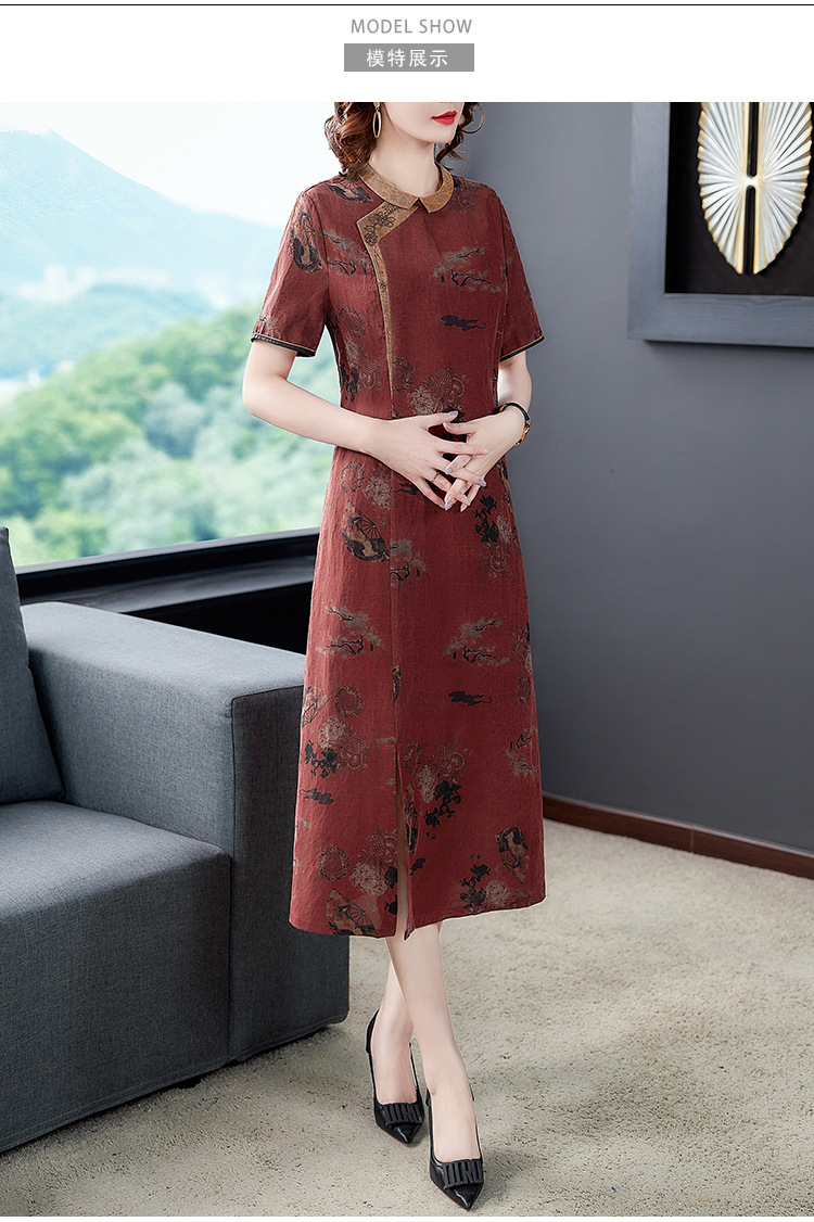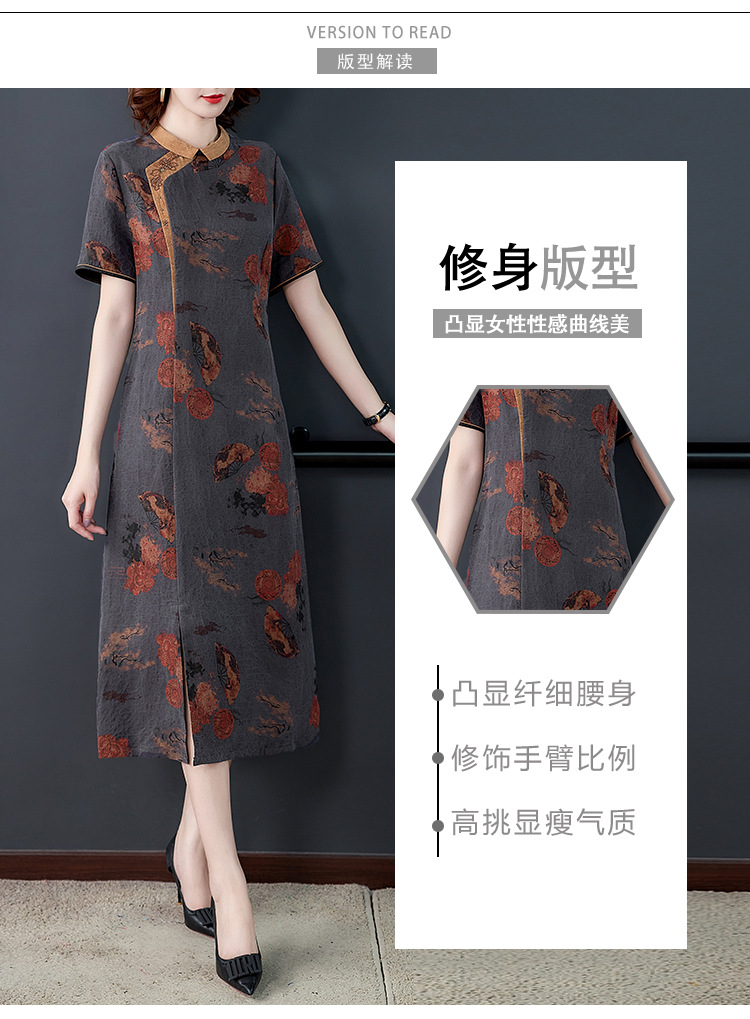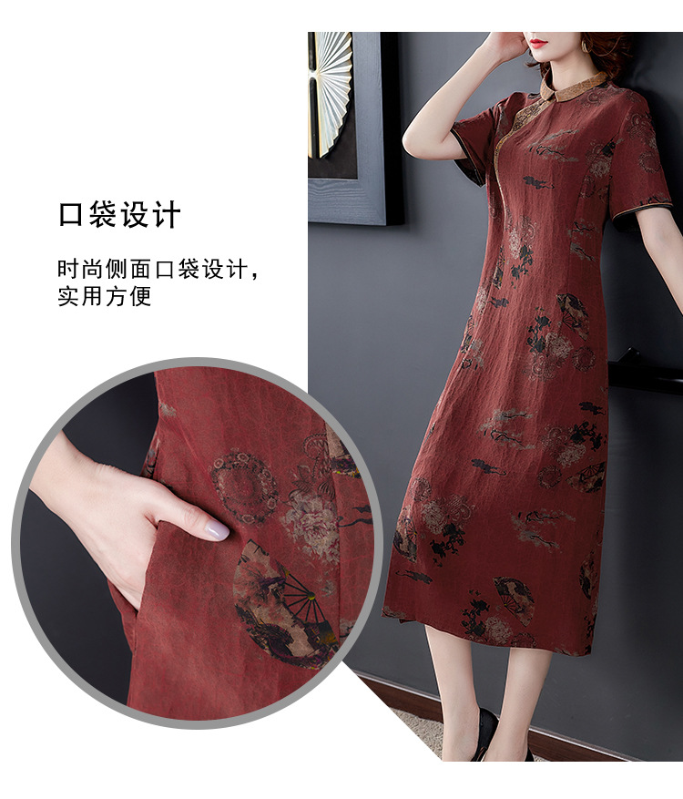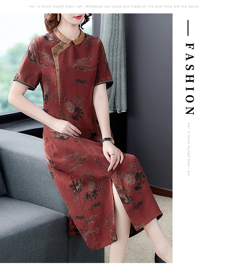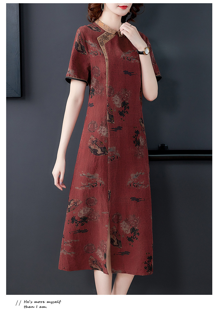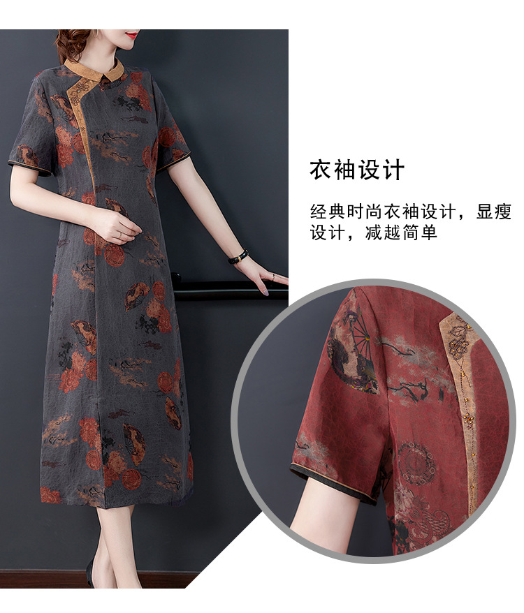 龜裂紋香云紗連衣裙女品牌真絲桑蠶絲高貴修身顯瘦氣質大碼旗袍裙