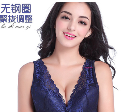 大碼胖mm性感蕾絲內衣背心式無鋼圈聚攏調整型女內衣大胸罩全罩杯