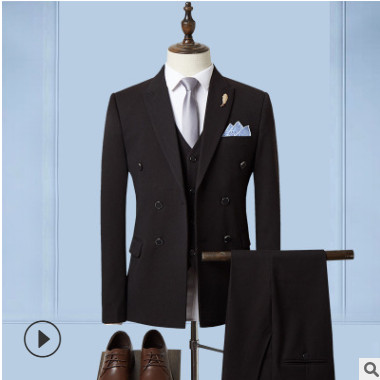 西裝男2019新款英倫風 商務西服套裝都市白領上班西裝三件套代發