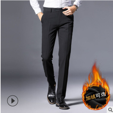 2019新款修身西褲男式冬季韓版休閑褲加絨小腳褲加厚保暖長褲商務