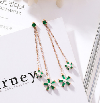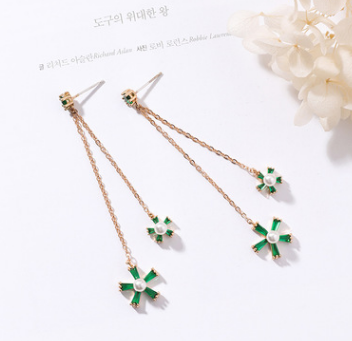 韓版小清新綠色鋯石花朵耳環個性百搭超仙網紅耳墜簡約珍珠耳飾女