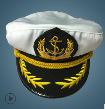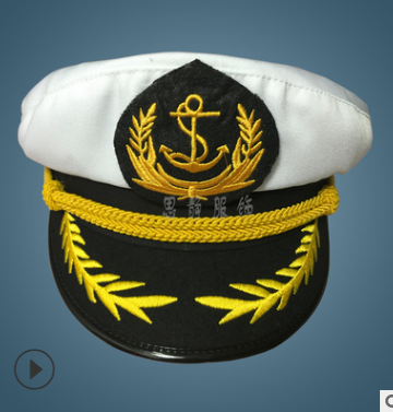 海事員工大沿帽白色船員帽子海軍大蓋帽舞臺演出大檐帽白色軍帽