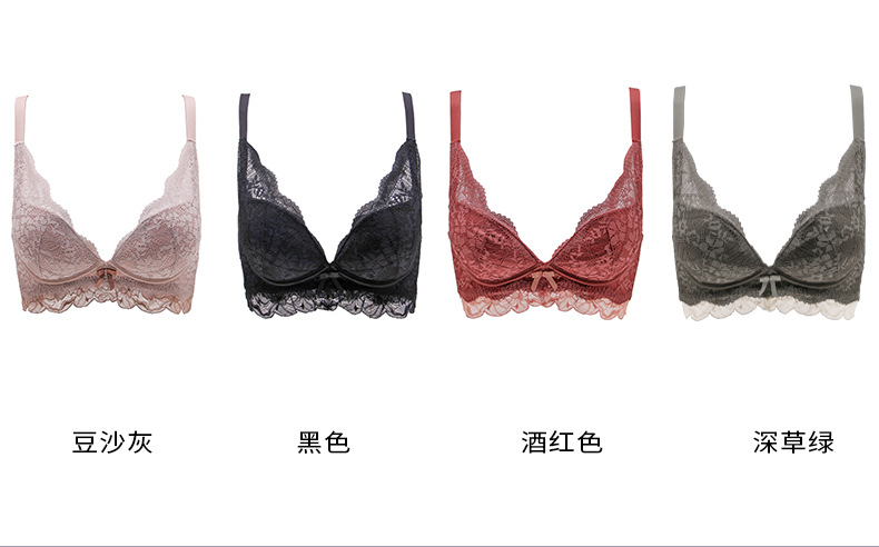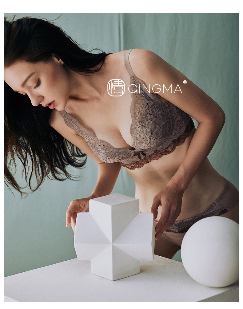 qingma新品性感蕾絲內(nèi)衣女小胸聚攏調(diào)整型文胸加厚一件代發(fā)