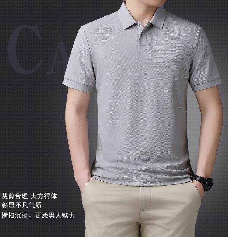 夏季輕奢桑蠶絲短袖T恤男士中老年爸爸裝休閑上衣半袖體恤POLO衫