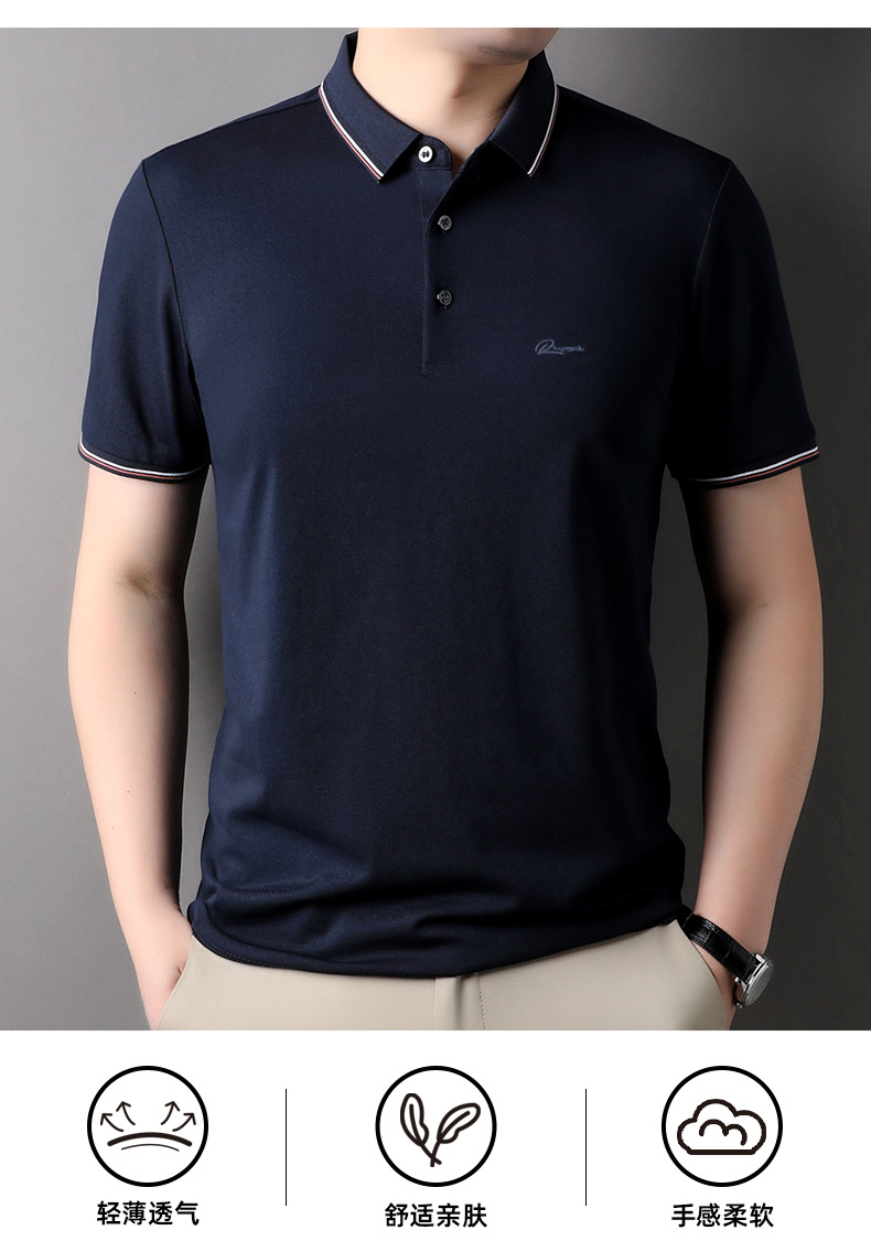 高端男式夏季短袖T恤寬松免燙百搭休閑商務冰絲翻領桑蠶絲polo衫
