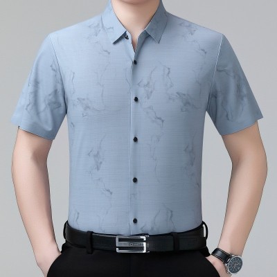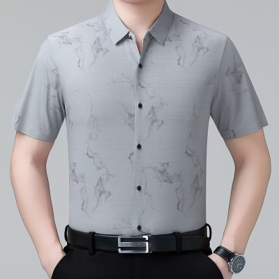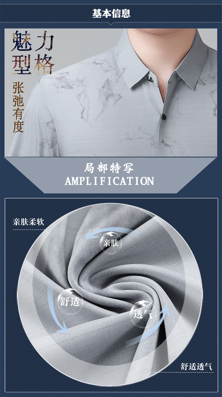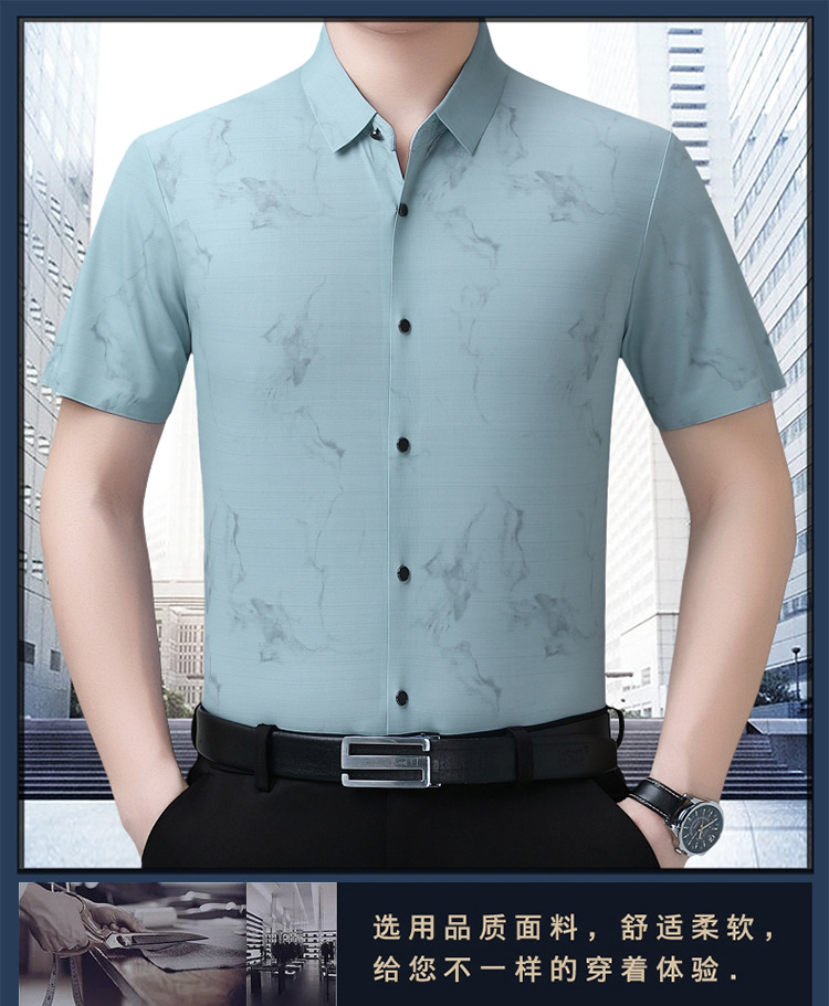高端中年爸爸襯衣輕奢男裝夏季短袖時尚休閑透氣百搭襯衫親膚上衣