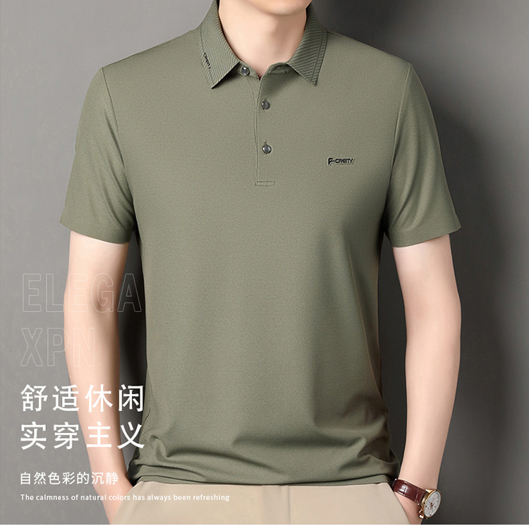 大牌夏季新款無痕短袖t恤翻領涼感休閑中青年純色男式冰絲polo衫